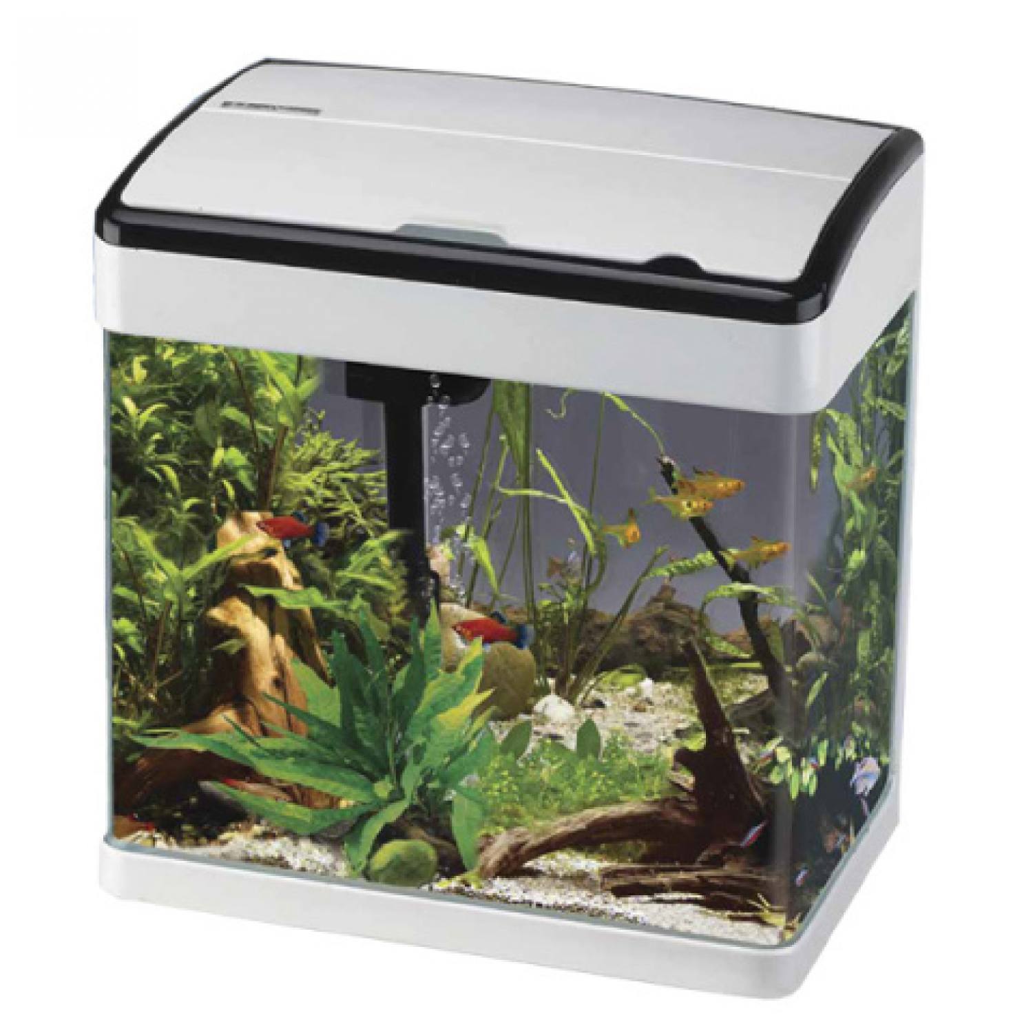 The addition of a heater (sold separately) will make this aquarium perfect for tropical fish.
