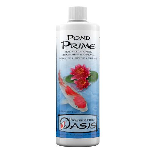 Pond Prime is a complete conditioner that removes chlorine, chloramine, and detoxifies ammonia and nitrite. It also provides essential ions and stimulates natural slime coat. Pond Prime also enhances nitrate removal. It will also detoxify any heavy metals found in the tap water at typical concentration levels. It should be the first choice conditioner when setting up a new pond, adding, or changing water. No other product is required to make water safe, even in high chloramine situations. Unlike competing products, Pond Prime does not cause a pH drop or over-activate skimmers.