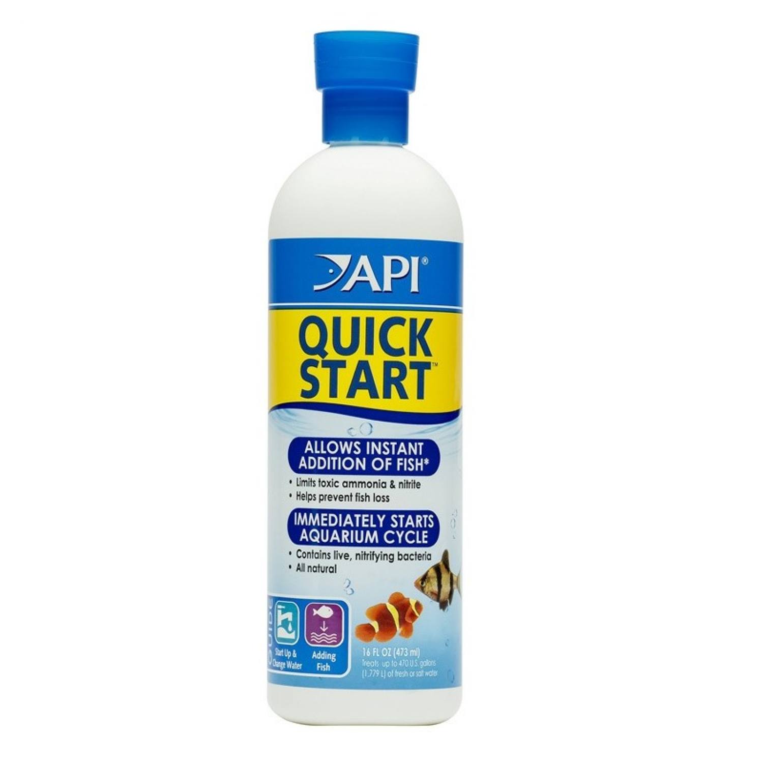 API Quick Start allows for the instant addition of fish, as it immediately starts the natural aquarium cycle with beneficial bacteria, which converts toxic ammonia into nitrite, then into harmless nitrate to help prevent fish loss in your tank. Best for use when starting a new aquarium, after water changes and filter changes, and when adding new fish to an existing aquarium. API Quick Start may be used in both fresh and saltwater aquariums.